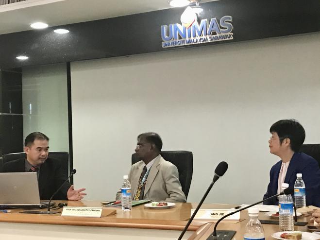 在UNIMAS大学,与国际处哈吉.阿兹兰主任进行洽谈,就外派交流老师、学生在外学习、生活安排等进行交流,全面了解掌握相关情况。