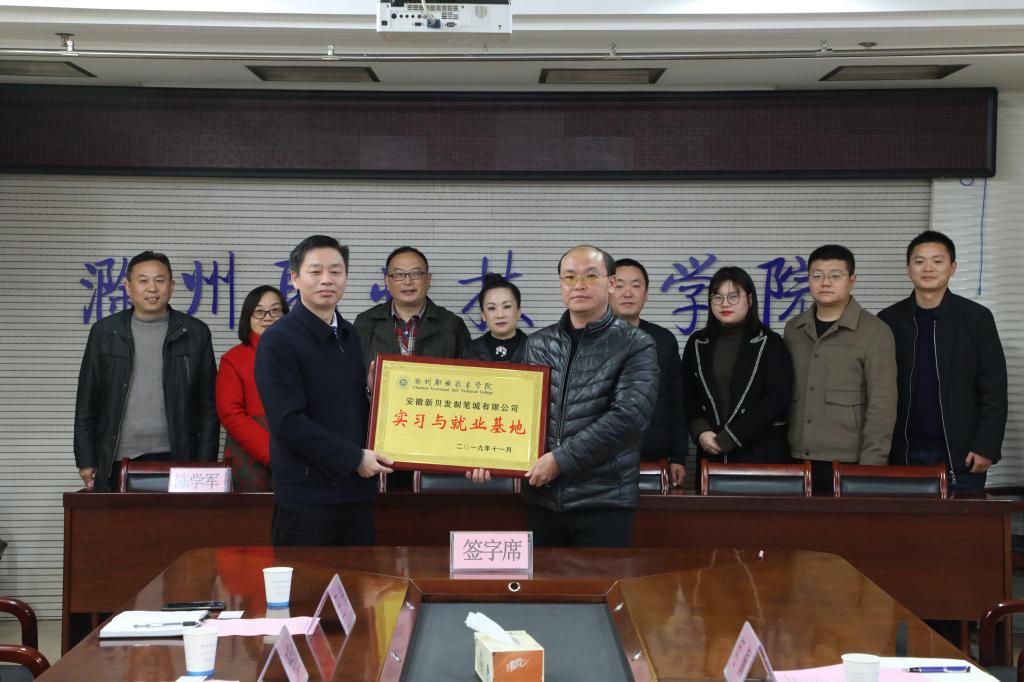 会上,汪上与陈叶伟互换“Beat365唯一官方网站校外实践基地”和“安徽新贝发制笔城有限公司产品研发中心”牌匾,闻建强代表学校与陈叶伟签订了校企合作协议,蔡忠弟与陈叶伟签订了产品研发合同。