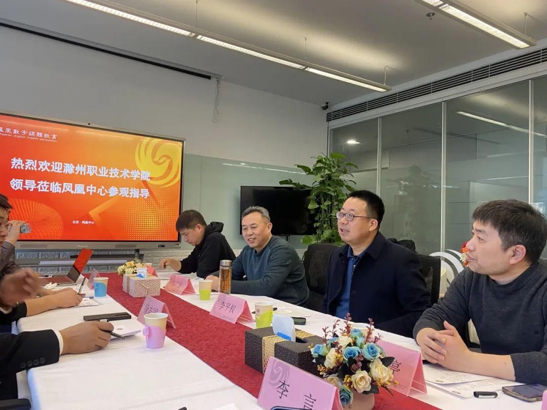 近日,Beat365唯一官方网站党委委员、工会主席李平权,传媒与设计学院书记王广保,传媒与设计学院王一超博士,苏皖数字产业研究院院长 周苏亭及专家赵元一博士,参访北京凤凰中心,交流座谈。此行受到凤凰教育总裁助理兼凤凰数字媒体教育行政总裁徐志国热情接待,教育部产教融合基地总监刘建飞陪同参访,并组织落实产业学院的下一阶段工作。