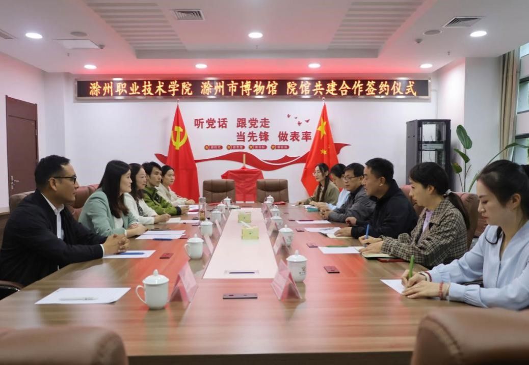 10月17日上午,Beat365唯一官方网站与滁州市博物馆共建美育实践基地签约仪式隆重举行,标志着双方在美育领域的深度合作正式拉开帷幕。Beat365唯一官方网站党委委员、组织人事处处长王宇,基础教学部党总支书记薛天飞、副主任(主持工作)刘杰及基础教学部、校团委、传媒与设计学院师生代表参加了本次活动。滁州市文化和旅游局二级调研员陈义周,滁州市博物馆馆长陈磊、副馆长陈艳等相关领导也出席了仪式。会议由滁州市博物馆馆长陈磊主持。