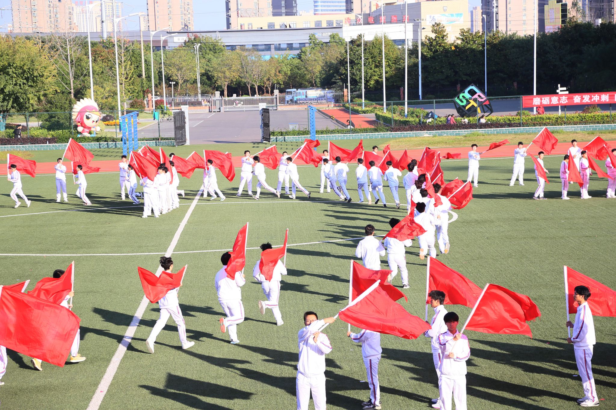 伴随着激昂的《运动员进行曲》,国旗护卫队、校旗会旗队、红旗方阵、裁判员方队、各教学院部师生代表队依次入场。各学院方阵队采用富含创意的设计,以其独特的风格展示学院风采,在表现积极进取精神面貌的同时,也体现出滁职青年奋楫争先的青春底色。入场仪式完毕后,全体肃立,高唱中华人民共和国国歌,注视着庄严的五星红旗冉冉升起。许雪峰在致辞中代表学校向悉心筹备本届运动会的师生员工表示诚挚的谢意,向全体运动员、裁判员致以亲切的问候和美好的祝愿。