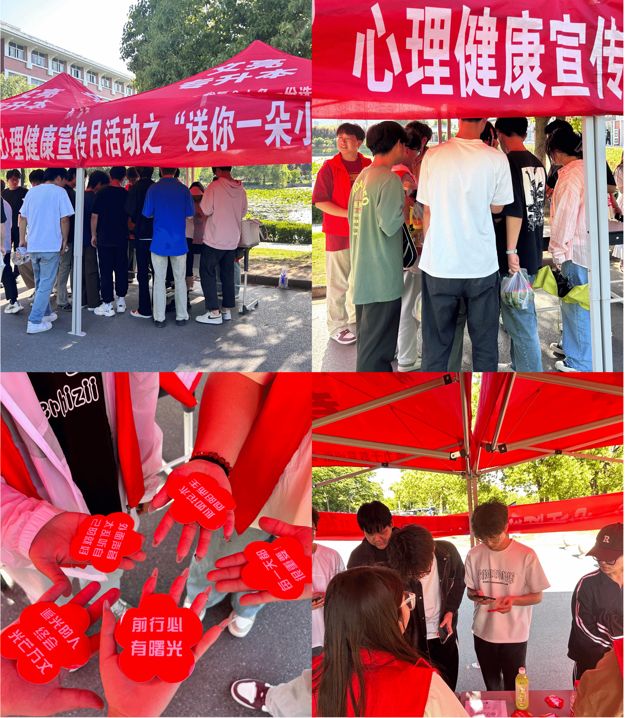 此次活动形式新颖,将具有心理能量和情绪价值的话印在小红花贴纸上,让路过的同学们随意抽取,从而从暖心文字中得到鼓励,为同学们提供生活上的小确幸,感受到生活中的小美好。本次“送你一朵小红花”心灵能量盲盒活动宗旨是不管这一天是美好还是劳累,都不要忘记给自己送一朵小红花,奖励积极生活的自己,同时也请继续把这份温暖传递给身边的人。因为身边人的鼓励最能让同学们产生共鸣,感受到支持,进而获得内心的能量。