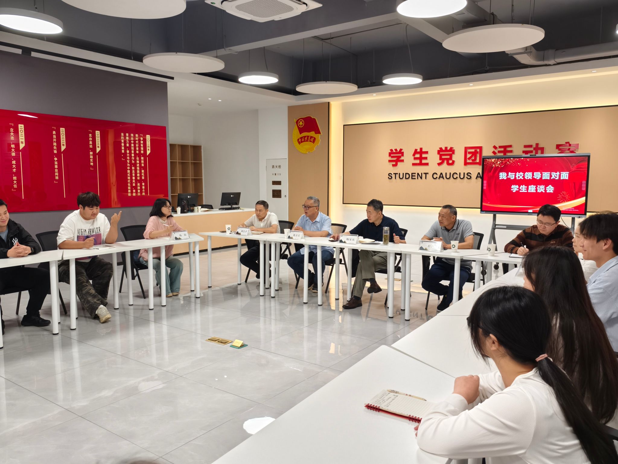 座谈会上,学生代表围绕学习生活实际,积极提出问题与建议。在硬件设施方面,就宿舍设备老化、食堂饭菜口味与卫生、浴室热水供应及设施维护、教室多媒体设备故障等问题进行反馈;在校园生活方面,指出学生活动形式较为单一,缺乏创新性与吸引力。针对这些问题,参会领导们认真倾听,逐一作出详细解答。对需进一步调研的事项,承诺尽快组织相关部门研究并制定解决方案,及时给予学生满意答复。