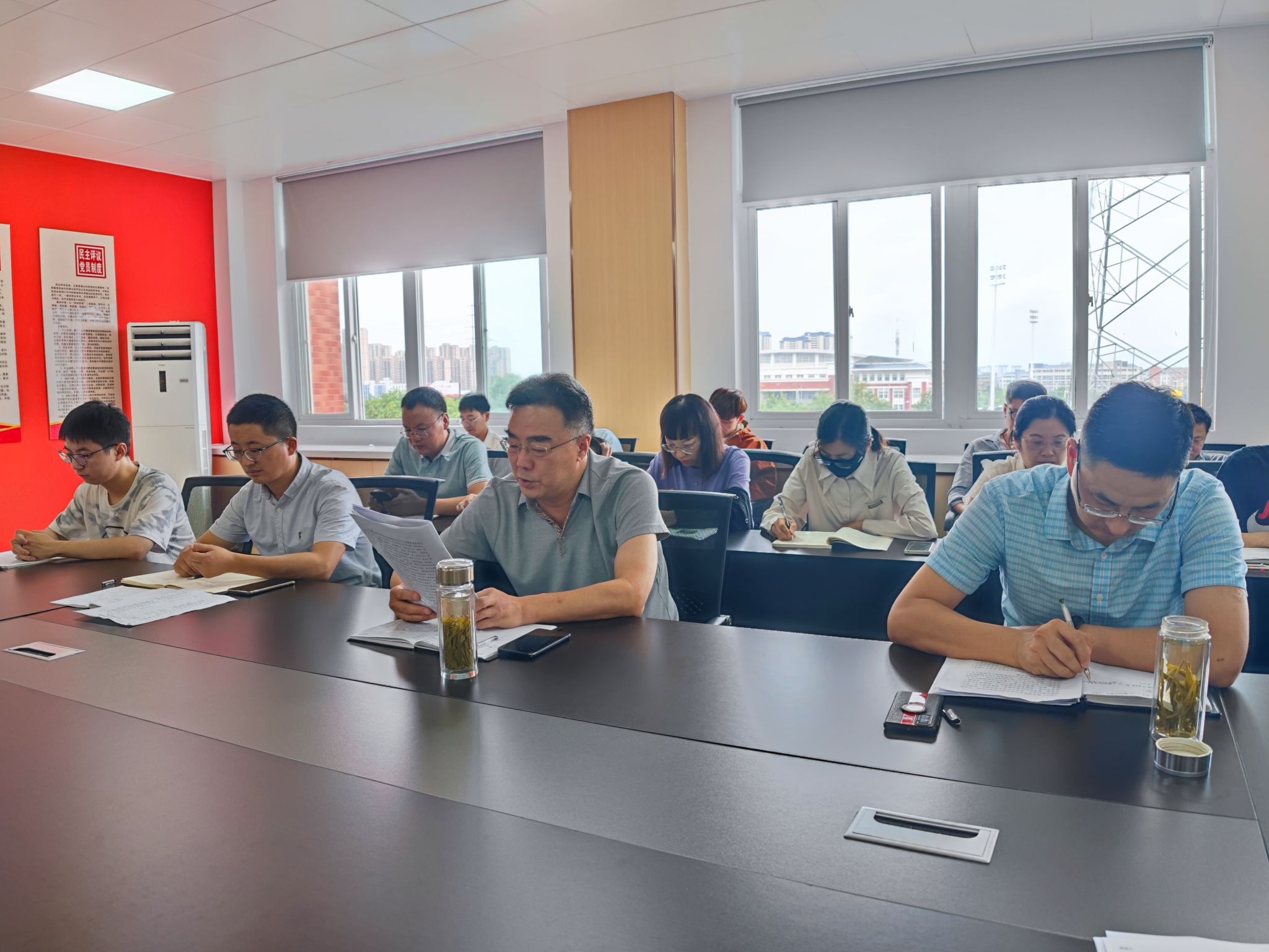 9月20日下午,食环学院组织召开会议,传达学习校党委关于开展学习贯彻习近平新时代中国特色社会主义思想主题教育会议精神,深入开展理论学习。学院全体党员、教职工参加会议。