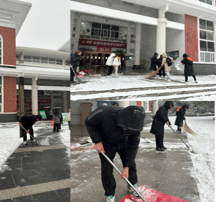 12月18日,一场大雪与亭城不期而遇,雪花洋洋洒洒覆盖了整个滁职校园,放眼望去,一片银装素裹,在带来欢喜与浪漫的同时,这场大雪也给师生出行带来不便。为此,本科教育王丽、汪怡鸣小组以雪为令,迅速行动,在人流量较大的食堂门口清扫积雪,方便同学们出行,最大限度减少积雪带来的不利影响。