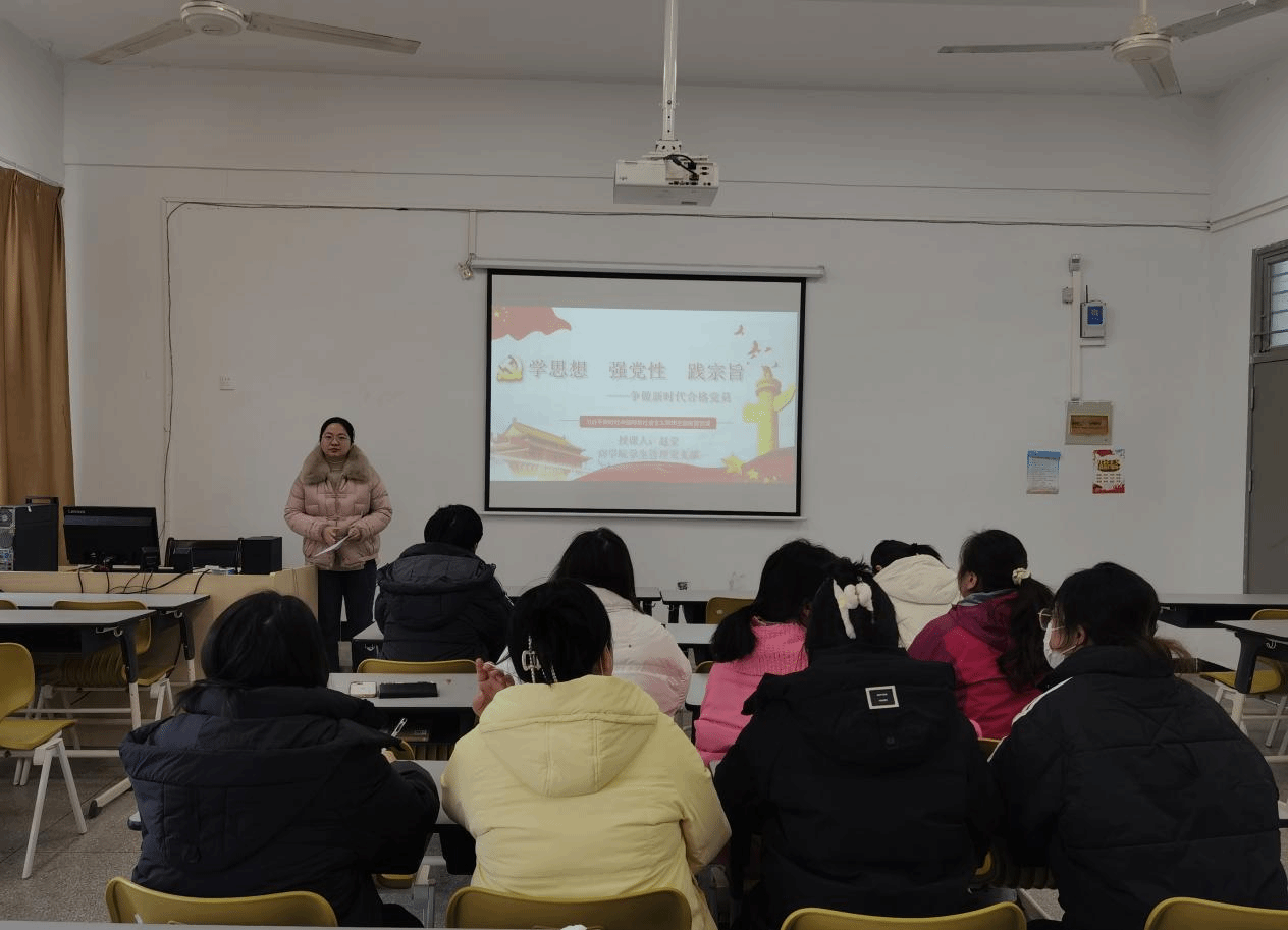 为深入学习贯彻习近平新时代中国特色社会主义思想,进一步统一思想,凝聚共识,推进主题教育走深走实,12月20日,商学院学生管理党支部书记赵莹以“学思想 强党性 践宗旨——争做新时代合格党员”为主题,为学生党支部全体师生党员讲了一堂生动的党课。