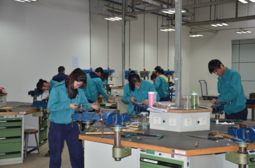 博西华家电制冷有限公司培训部建有钳工实训室、车工实训室、数控加工实训室、电工电子实训室、PLC应用实训室、液压与气动实训室、MPS柔性制造系统等教学设备供学员实践操作使用。