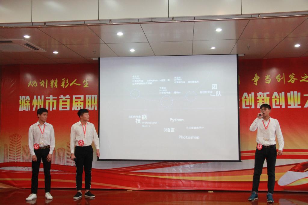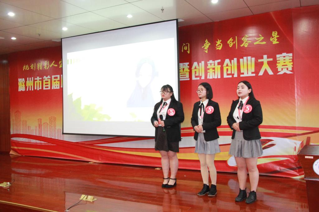 本次比赛分为职业规划组和创业创意组。经过激烈角逐,张陈雨(滁州城市职业学院-中职)、孙舒文(滁州市信息工程学校)、李晓(滁州城市职业学院-中职)、舒香(滁州市机械工业学校)和马莹(凤阳科技学校)荣获职业规划组一等奖。滁州城市职业学院(中职)选送的《心情驿站发泄屋》、安徽滁州技师学院选送的《蔬菜DIY烘焙坊》和滁州市机械工业学校选送的《“逗豆吧”连锁店》分别荣获创业创意组一等奖。孙钰、宣蕾等7位指导教师荣获大赛优秀指导教师奖,滁州市机械工业学校、安徽滁州技师学院、滁州市应用技术学校和定远化工学校荣获大赛最佳组织奖。