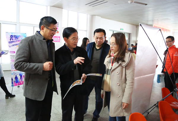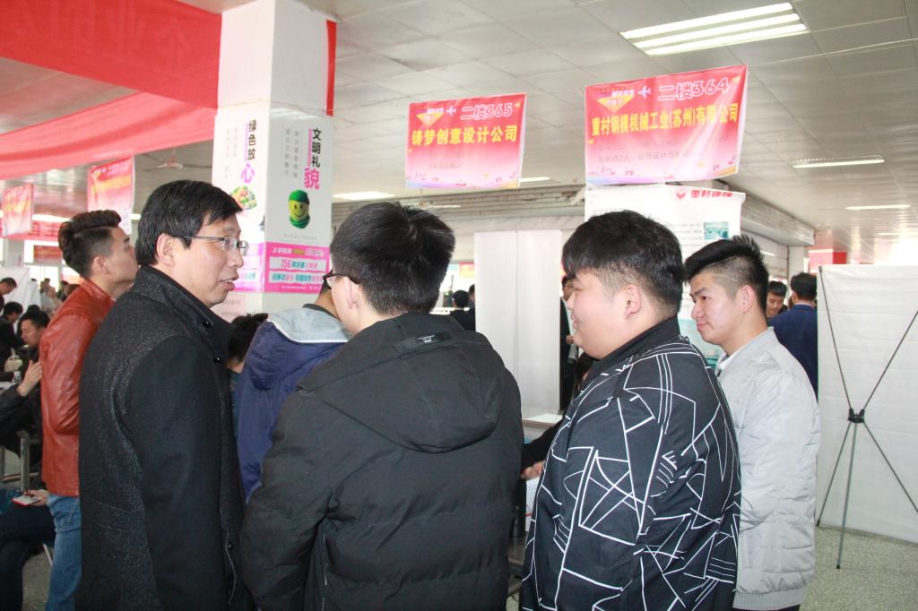 芜湖县人力资源服务中心主任、新芜经济开发区局长陶贤林与昆山高新技术产业开发区人社局杨寅骅科长携当地企业前来招聘,他们对学校双选会组织工作表示赞赏,对学生扎实的专业知识和综合素质给予充分肯定,希望能够以校园招聘为契机,秉持开拓创新精神,实现政府、学校、企业和学生多方共赢,为社会进步、经济发展作出贡献。