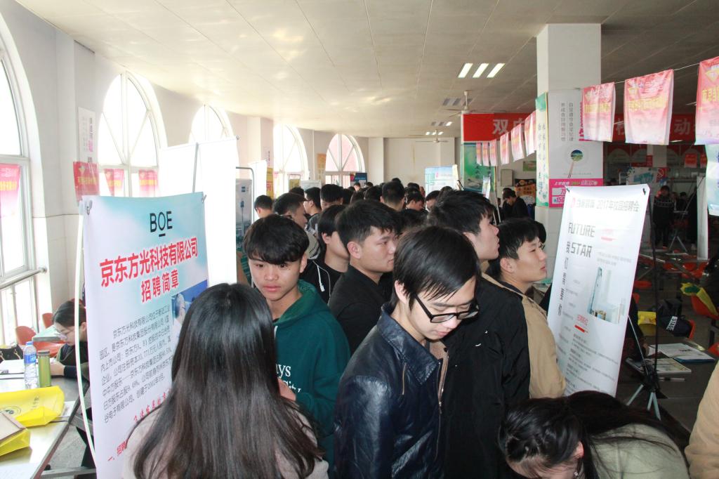 为实现更高质量、更加充分、更高满意度的就业目标,服务毕业生好就业、就好业,11月26日上午,学院2018届毕业生大型双选会在新校区隆重举行。滁州市南方黑芝麻食品有限公司、京东方光电科技、吉利集团、方太集团、奇瑞汽车、格力电器、中国平安等全国400多家用人单位到场参会,提供8000余个就业岗位,涵盖机械、汽车、会计、市场营销、食品、计算机、建工、电子、化工、艺术设计等40多个专业,吸引毕业生3000余人。