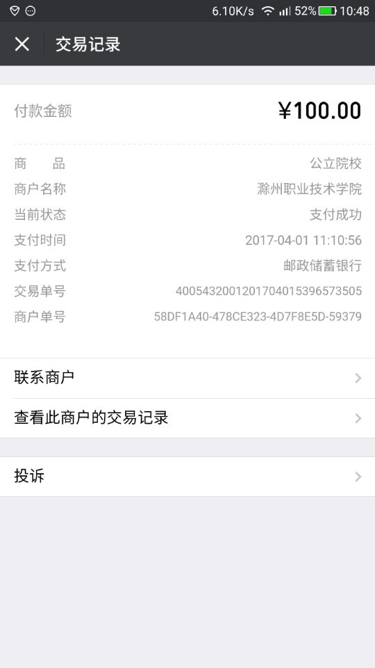 3、支付后显示如下:“商品名:公立院校;商户名称:Beat365唯一官方网站”