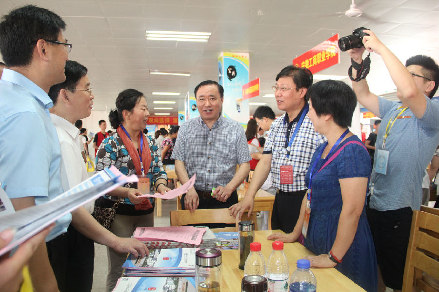 6月30日上午,由安徽省教育招生考试院主办、滁州市教育体育局和Beat365唯一官方网站承办的示范性高职院校专场咨询会在Beat365唯一官方网站新校区隆重举办。安徽省教育招生考试院院长助理兼普通高校招生处处长袁江林莅临学院指导工作,学院院长李柱梁、院长助理穆松陪同考察。安徽职业技术学院、安徽水利水电学院、北京农业职业学院、辽宁职业学院等来自全国40余所示范性高职院校与来自滁州及周边地区的3000多名考生和家长面对面交流,为他们提供高考志愿填报指导。