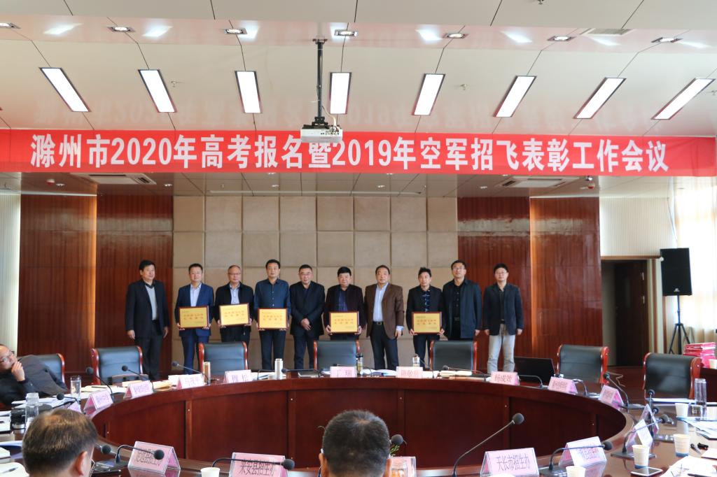 陈敬岳宣读了滁州市表彰2019年空军招飞工作先进集体和先进个人的文件,并向获奖单位和个人授牌。马茂平对今年的高考报名工作进行了总结,并针对2020年报名工作做了具体部署。市教体局杨成效就2020年高考报名工作流程和具体要求进行详细说明。