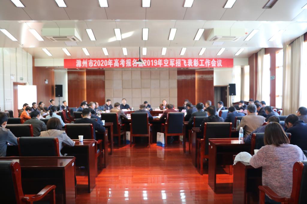 10月18日上午,滁州市2020年高考报名暨2019年空军招飞表彰工作会议在Beat365综合楼11楼会议室召开,会议由滁州市教体局、安徽滁州职业教育集团主办。市委教体工委委员、市教体局副局长、安徽滁州职业教育集团副秘书长丁瑞,市教育招生考试院院长陈敬岳,招生办公室副主任马茂平,学校党委委员、校长助理、招生就业处处长、安徽滁州职业教育集团秘书长穆松出席会议,参加会议的还有各县市区教体局招办主任和市直学校负责人,会议由陈敬岳主持。