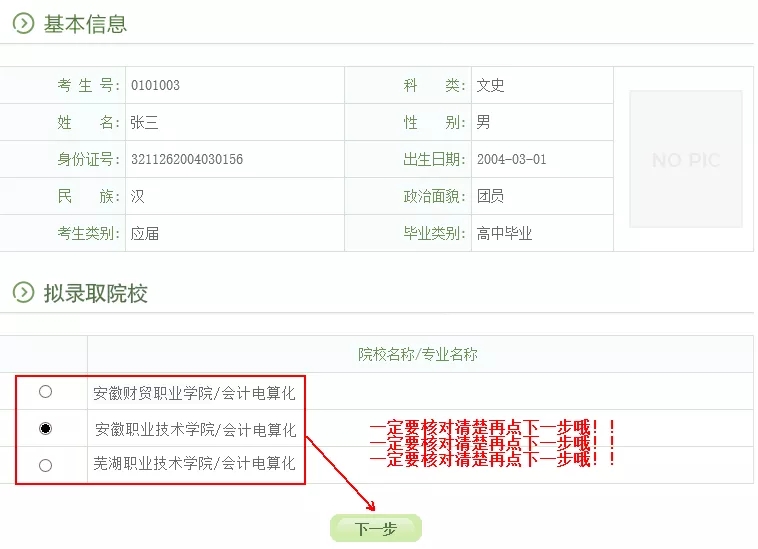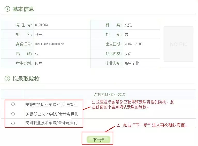 根据省教育厅的要求,为扩大考生选择权,考生可选报最多3所院校,一名考生可取得多所院校预录取资格。考生只有在规定时间内选择一所院校确认录取。录取院校一经确认,任何人不得更改。已被预录取但未网上确认的考生将视为放弃录取资格。
