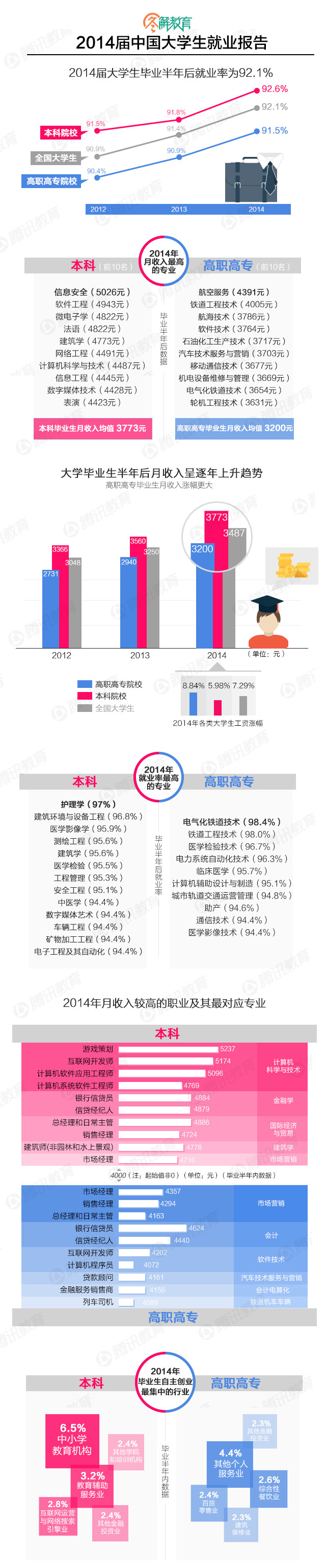 报告称2014届大学生平均月收入3487元