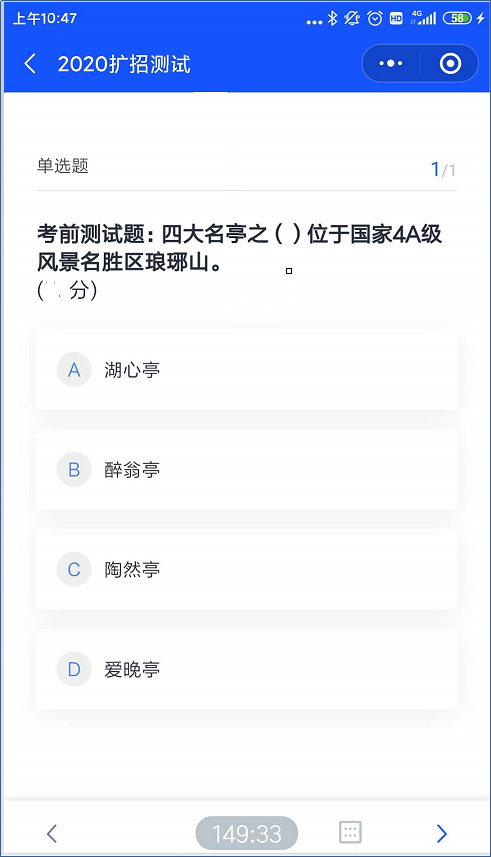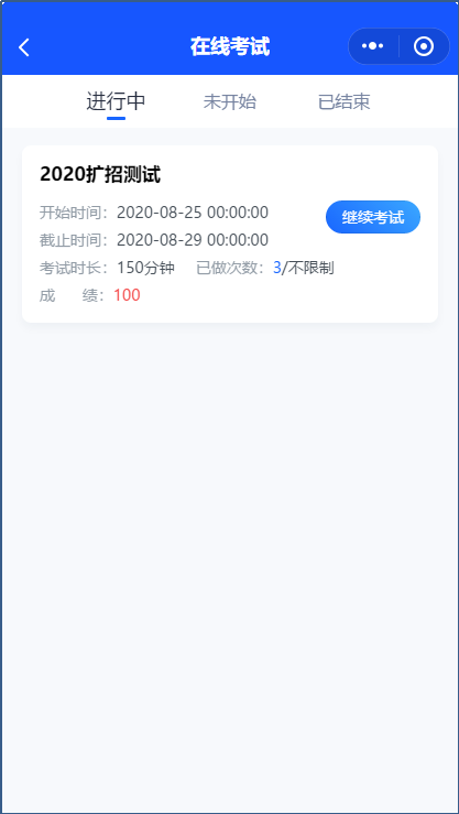 本次考试为线上考试,考生可以选择使用手机进行,如果考试过程中设备出现死机等其他意外情况,可重新登录无缝续考。