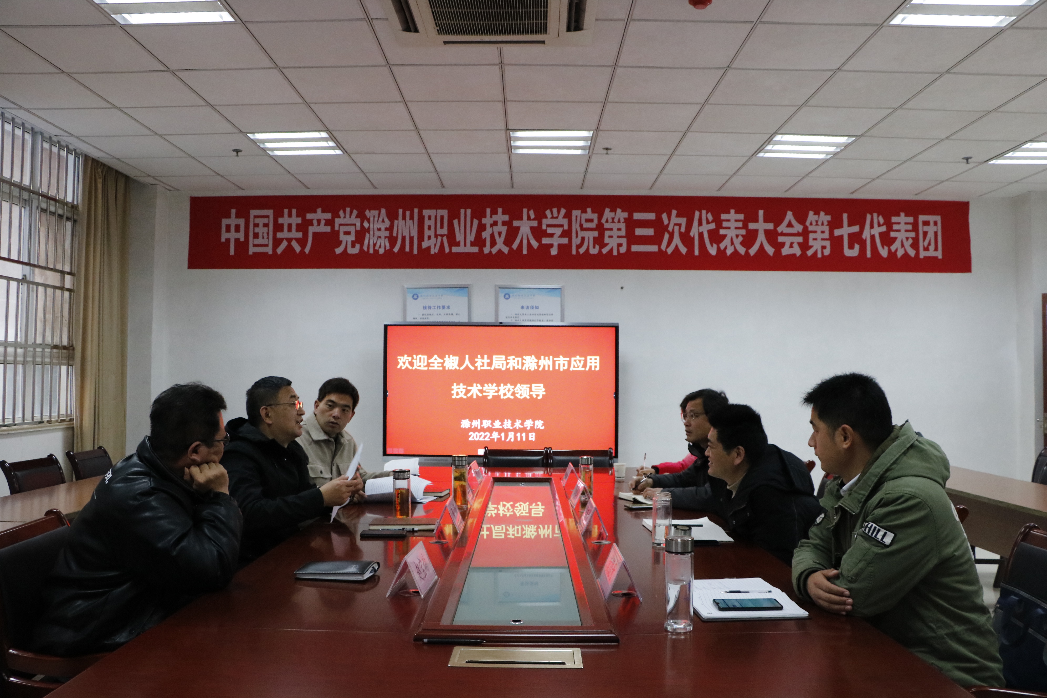 1月11日上午,滁州市应用技术学校书记、校长赵育成,全椒县人社局职建股负责人黄德奇一行来Beat365考察交流。校长助理、招生就业处处长穆松热情接待,招生就业处、继续教育学院相关负责人参加了座谈。