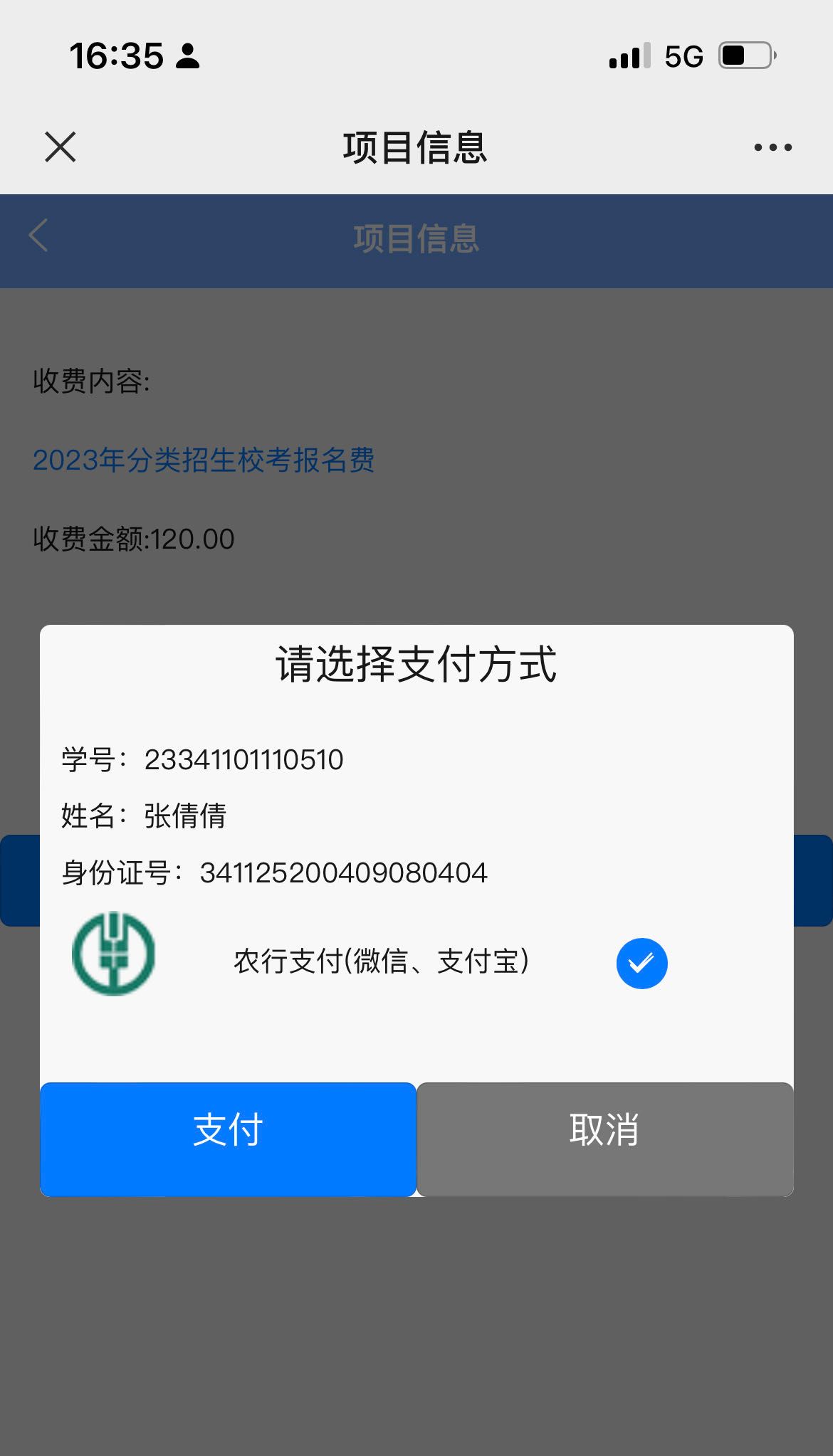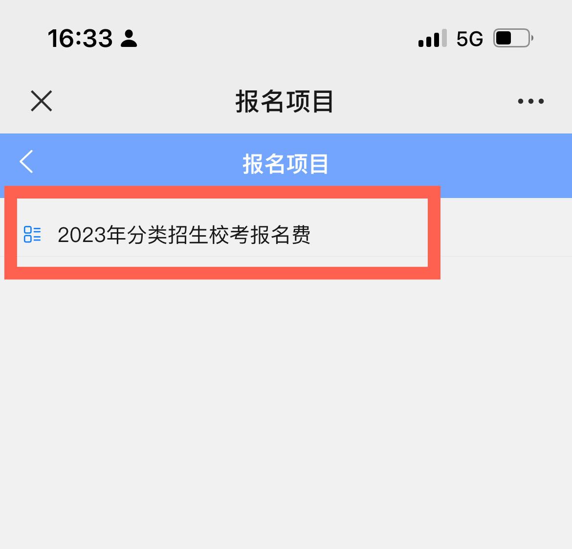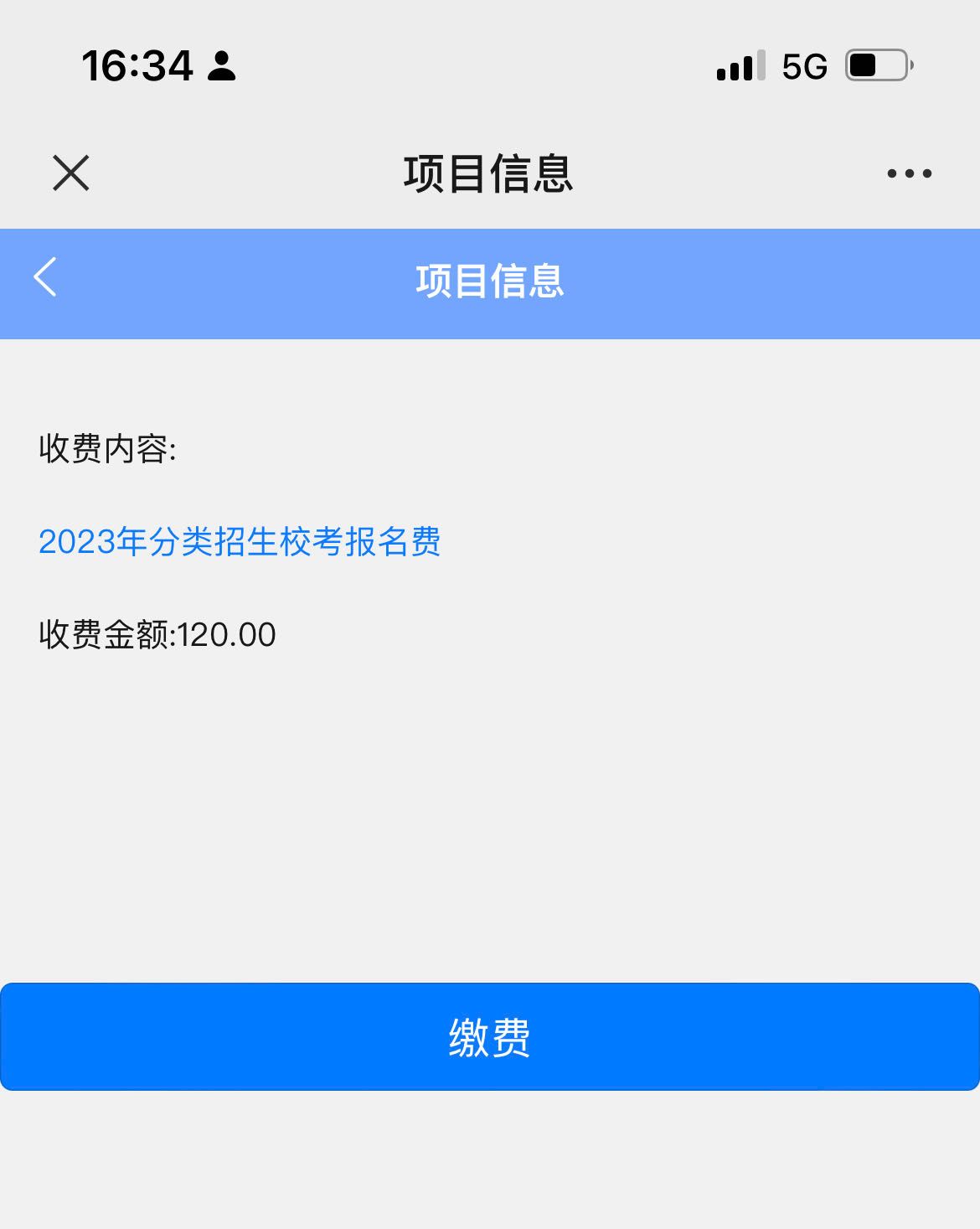 三、依次点击“报名缴费别名”——“报名项目1”——“2023年分类招生校考报名费”——“缴费”。具体操作如下图: