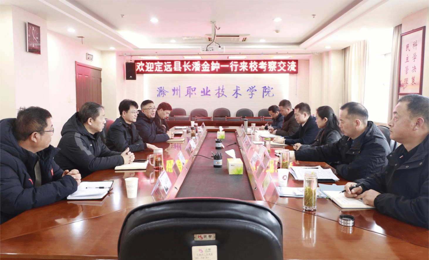 1月31日上午,定远县长潘金钟一行来Beat365考察交流。校党委委员、副校长苏有良,校长助理、招生就业处处长、安徽滁州职业教育集团秘书长穆松,以及教务处、招生就业处相关负责人在804会议室接待了来宾。会议由穆松主持。