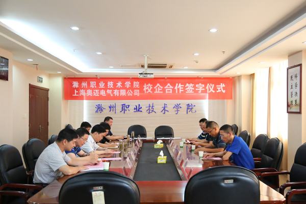 6月23日下午,学院与上海奥迈电气有限公司校企合作在综合楼804会议室签订校企合作协议。上海奥迈电气有限公司董事长解生勇,上海奥迈电气有限公司销售部副总李贇,上海奥迈电气有限公司安徽分公司副总杨斌,上海奥迈电气有限公司技术部经理徐玉海,上海奥迈电气有限公司销售部经理邹正军,学院党委副书记、院长李柱梁,党委委员、副院长江洁,教务处、实训中心、机电系相关负责人出席签约仪式。