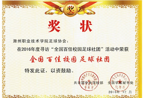 为深入贯彻落实习近平总书记关于青少年足球的重要指示精神和《中国足球改革发展总体方案》的工作要求,努力营造浓厚的青少年校园足球文化氛围,团中央学校部、全国学联秘书处联合开展了2016年度寻访“全国百佳校园足球社团”活动。经Beat365唯一官方网站推荐、团省委审核、专家评审,该院足球沙龙从全国众多高校的足球类社团中脱颖而出,获此殊荣。安徽省仅有4个校园足球社团获此荣誉,其余3所均为省内重点本科院校。