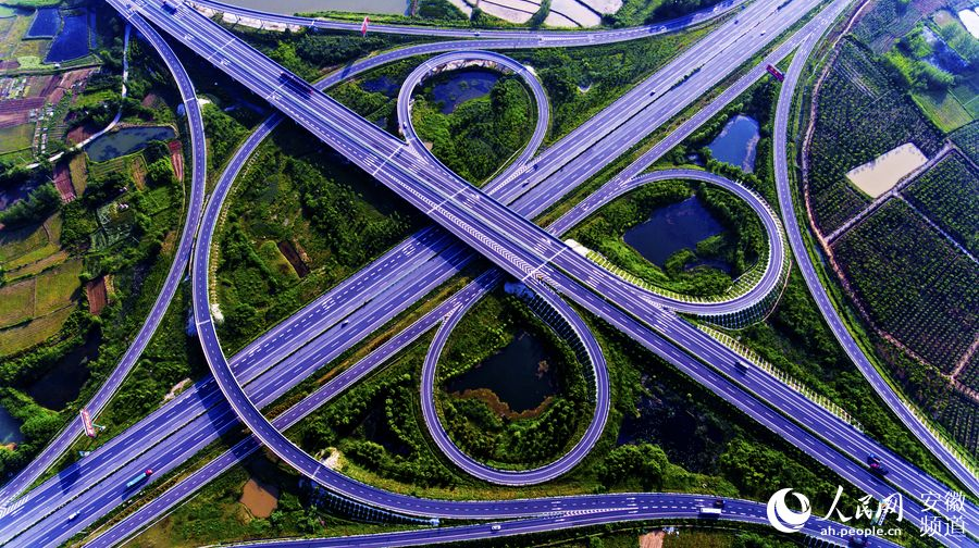 滁州吴庄立交俯瞰图。滁州高速公路总里程位居安徽第一。滁州市委宣传部供图