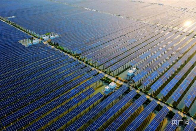 位于滁州天长高邮湖的光伏发电站(央广网发 滁州市委宣传部供图)