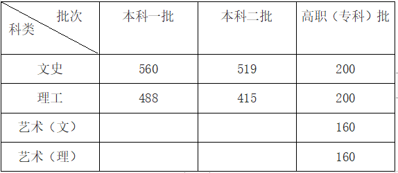 安徽省2021年普通高校招生文史、理工、艺术类录取控制分数线一览表