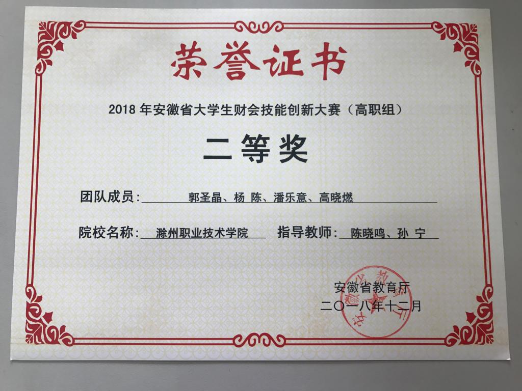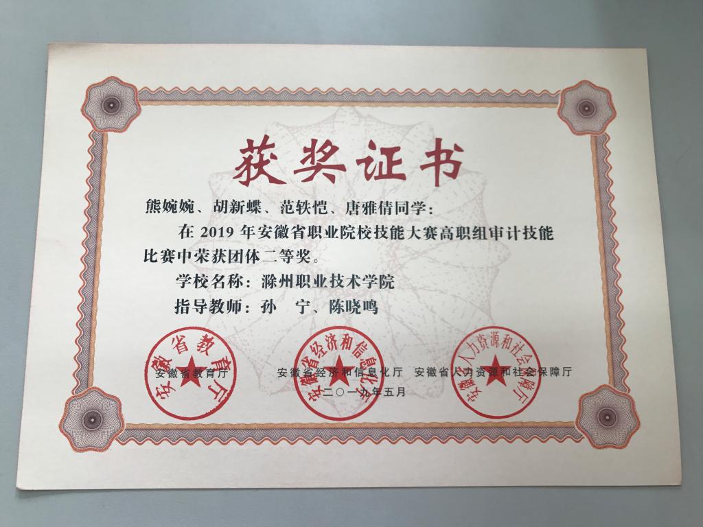 积极参加各类技能大赛,旨在通过大赛引领和促进会计专业教学改革,提升高职院校财经类专业人才培养水平。2018年安徽省大学生财会技能创新大赛(高职组)获二等奖;2019年安徽省职业院校技能大赛(高职组)会计技能比赛获二等奖;2019年安徽省职业院校技能大赛(高职组)审计技能比赛获二等奖。
