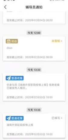 在“消息”中接收通知,及时点击进入“信息收集”,在规定的时间范围内完成信息的填写。注意按照填写格式要求填写,否则辅导员老师会要求打回重填哦!