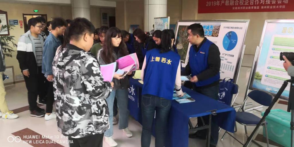 讲座结束后,市自来水公司的蓝背心志愿者们在综合楼大厅利用展板、传单等方式向现场的师生员工进行了节水宣传。