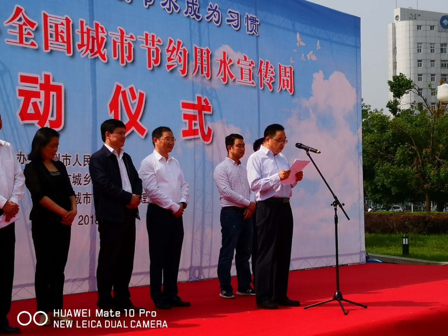 5月13日上午,根据市节水型城市创建办公室要求,我院相关领导及工作人员在人民广场参加滁州市2018年全国城市节约用水宣传周启动仪式。院党委委员、副院长程一斌在启动仪式上作表态发言并介绍了我院节水型校园创建工作开展情况。