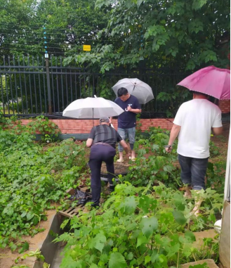 排查中对各幢建筑物的使用及安全隐患进行逐个查看,对校园道路破损、积水等情况进行记录,对各处围墙存在的下沉、倾斜等问题现场进行了排查鉴定。同时在汛期来临之际,对校园各处排水管道尤其是出水口进行了检查,确保排水畅通,安全度汛。排查结束后,胡凼要求,针对排查出的安全隐患问题,总务处要及时进行问题汇总并制定整改方案,抓紧整改落实到位,确保师生安全。