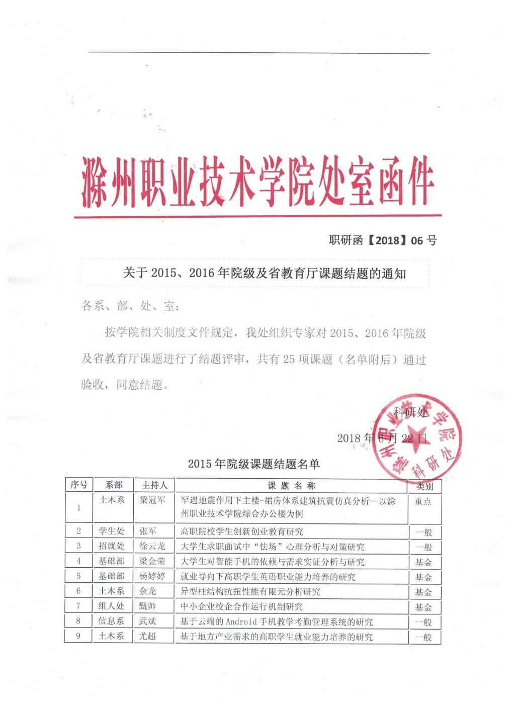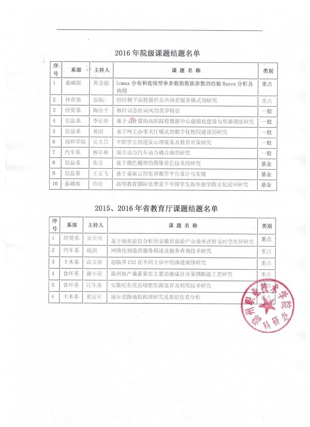 关于公布2015、2016院级课题与教育厅课题结项结果的通知