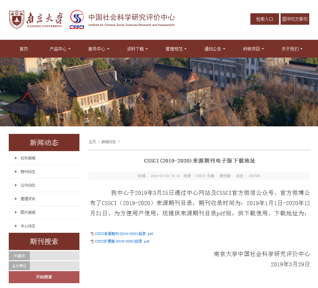 CSSCI(2019-2020)来源期刊电子版下载