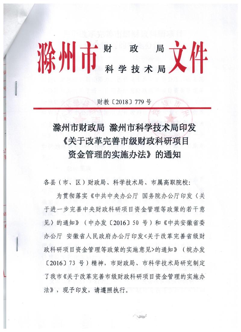 以习近平新时代中国特色社会主义思想为指导,全面贯彻落实党的十九大精神,深入贯彻落实习近平总书记视察安徽重要讲话精神,以新发展理念为引领,按照市六届六次会会及实施五大发展行动计划的总体部署,紧紧对接全市创新需求,进一步简政放权、放管结合、优化服务,改革和创新科研项目资金使用和管理方式,促进形成充满活力的科技管理和运行机制,更好激发广大科研人员积极性和创造性,加快建设现代化新滁州。