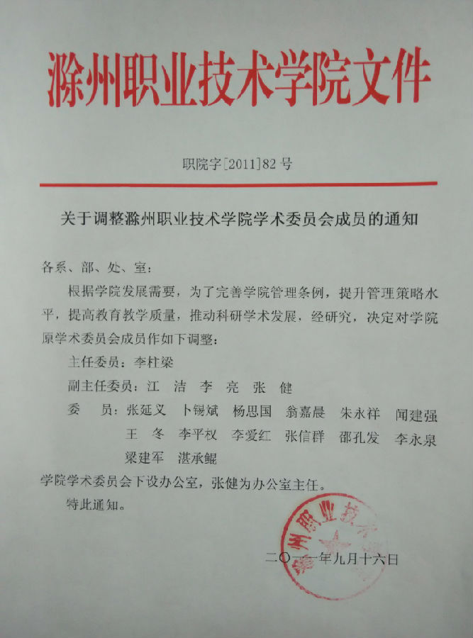 关于调整Beat365唯一官方网站(第一届)学术委员会成员的通知--职院字【2011】82号