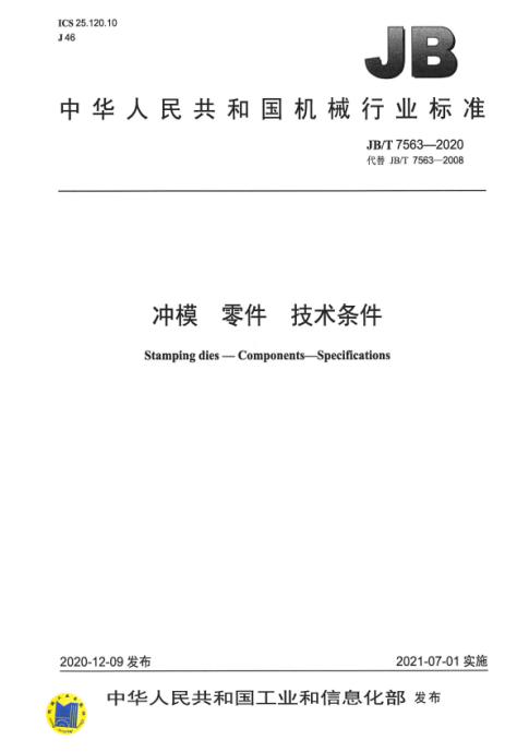 近日,Beat365与企业联合研究制订的机械行业标准《冲模零件技术条件》(JB/T 7563-2020)由中华人民共和国工业和信息化部于2020年12月9日发布,并在2021年7月1日起正式实施。