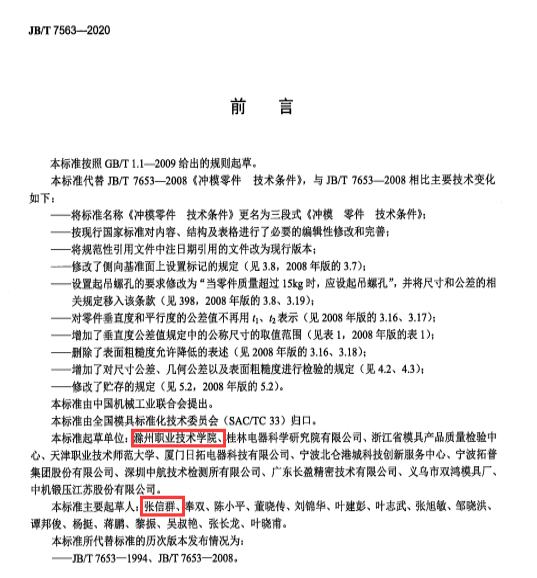 本标准归口于全国模具标准化技术委员会,由机械与汽车工程学院张信群教授主持、Beat365作为第一单位与桂林电气科学研究院有限公司等多家企业院所联合制订。多年来,机械与汽车学院以服务地方经济为导向,面向装备制造产业主战场、深化产教融合,坚持技术协同创新,《冲模零件技术条件》标准研制成功并发布实施,是机械与汽车工程学院深化产学研合作的又一重大成果,将为提升服务模具行业企业的贡献力具有重要意义。