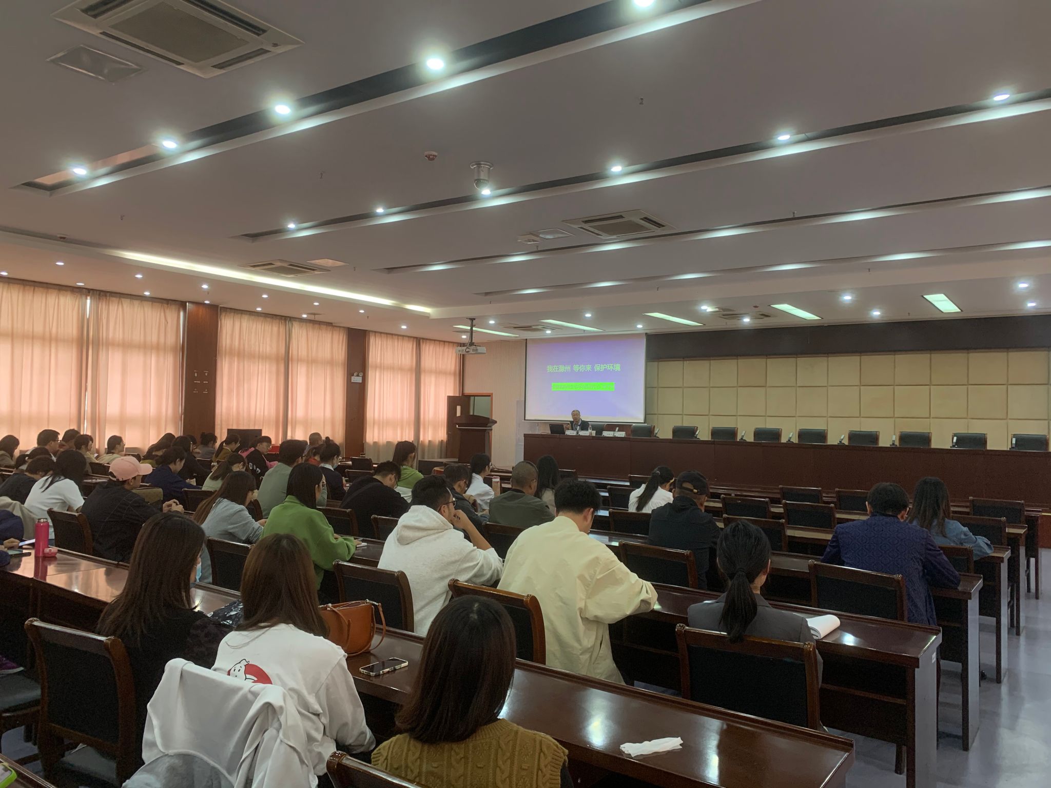 2023年10月25日下午,科技处邀请安徽省滁州生态环境监测中心高级工程师、应急办主任黄奇峰应邀来Beat365开展《生态环境保护你我同行》的专题讲座。科技处处长肖陆飞主持讲座,学校各教学院部和部门150多名教师参加。