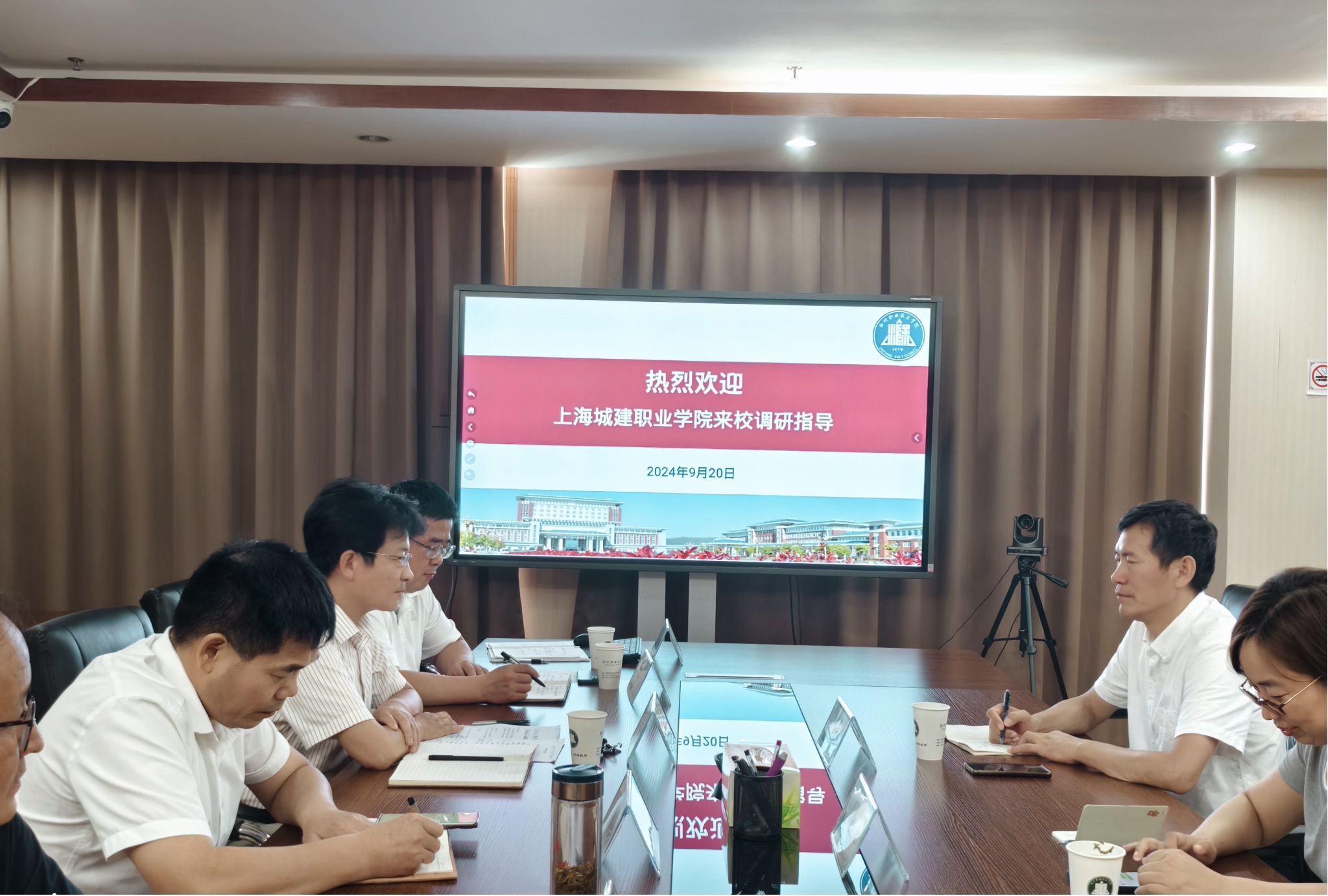 9月20日上午,上海城建职业学院党委委员、副院长淦爱品一行来Beat365,就人才培训、职业教育、产教融合、期刊建设等方面进行调研交流。Beat365党委委员、副校长苏有良,招生就业处副处长、校企合作办主任周多道,科技处副处长陈光锐、刘青陪同交流。