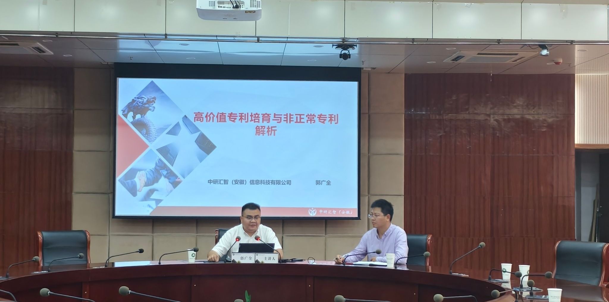 为提升学校科研创新成果转化能力,助力高价值专利培育工作,5月15日下午,科技处邀请中研汇智(安徽)公司知识产权部总监郭广全老师,在综合楼1102会议室开展“高价值专利培育与非正常专利解析”专题培训讲座。各院系青年教师及在研项目团队代表共60余人参加学习。