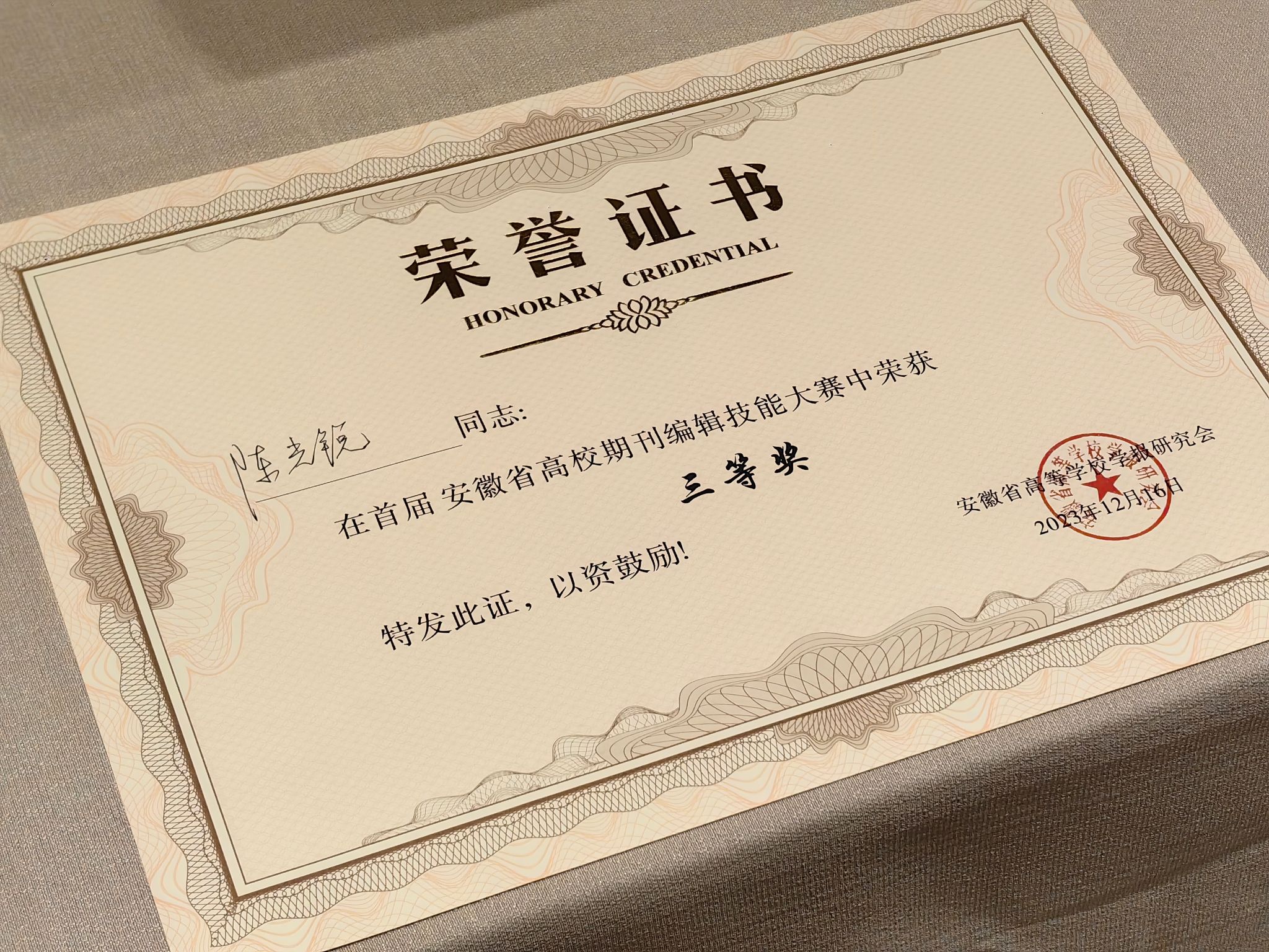 在本届年会期间,安徽省高校学报研究会举办了首届全省高校期刊编辑技能大赛,近90名本、专科高校编辑参加比赛,Beat365学报编辑部陈光锐荣获三等奖。