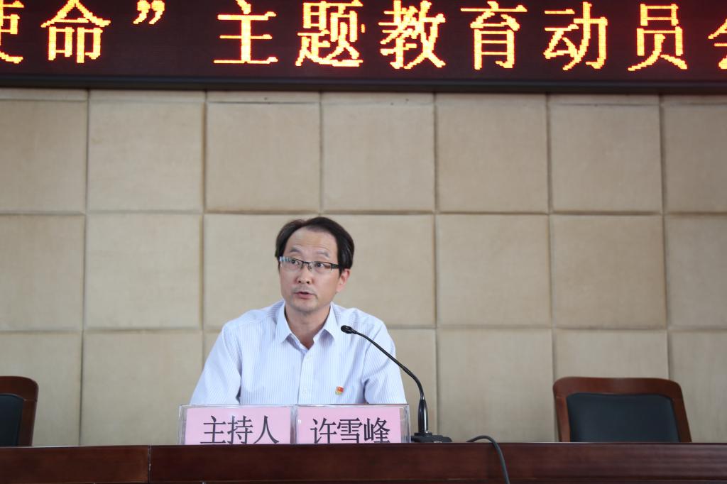 2019年9月18日,学校召开“不忘初心、牢记使命”主题教育动员会议,校党委书记李柱梁作动员讲话,市委第七巡回指导组副组长、滁州中学党委委员、纪委书记尹军,团市委组织部部长李唯到会指导,校领导吴大明、杨华龙、陈学军、李平权、李超出席会议,校长、党委副书记许雪峰主持会议。