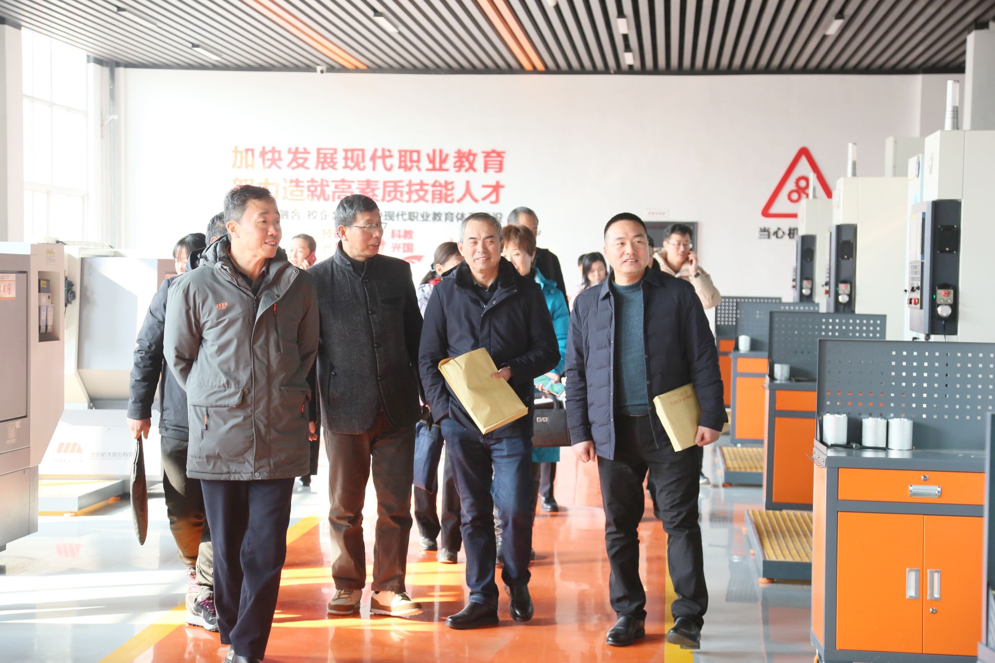 座谈会后,与会同志实地参观了学校实验实训中心、智能制造中心和劳模工匠工作室。
