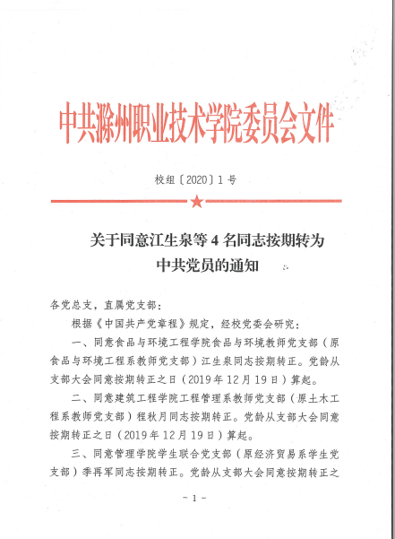 关于同意江生泉等4名同志按期转为中共党员的通知