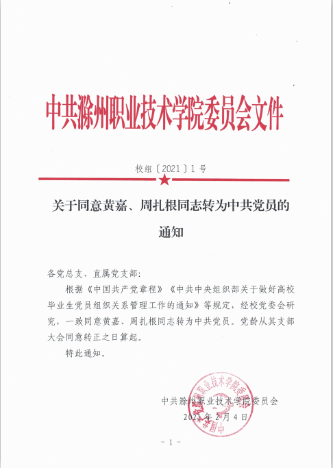 关于同意黄嘉、周扎根同志转为中共党员的通知