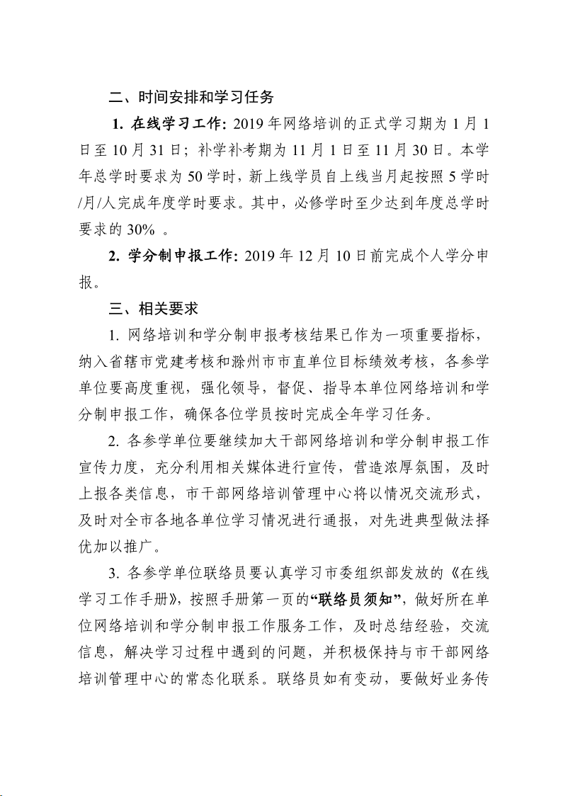关于开展2019年度干部网络培训和学分制申报工作的通知