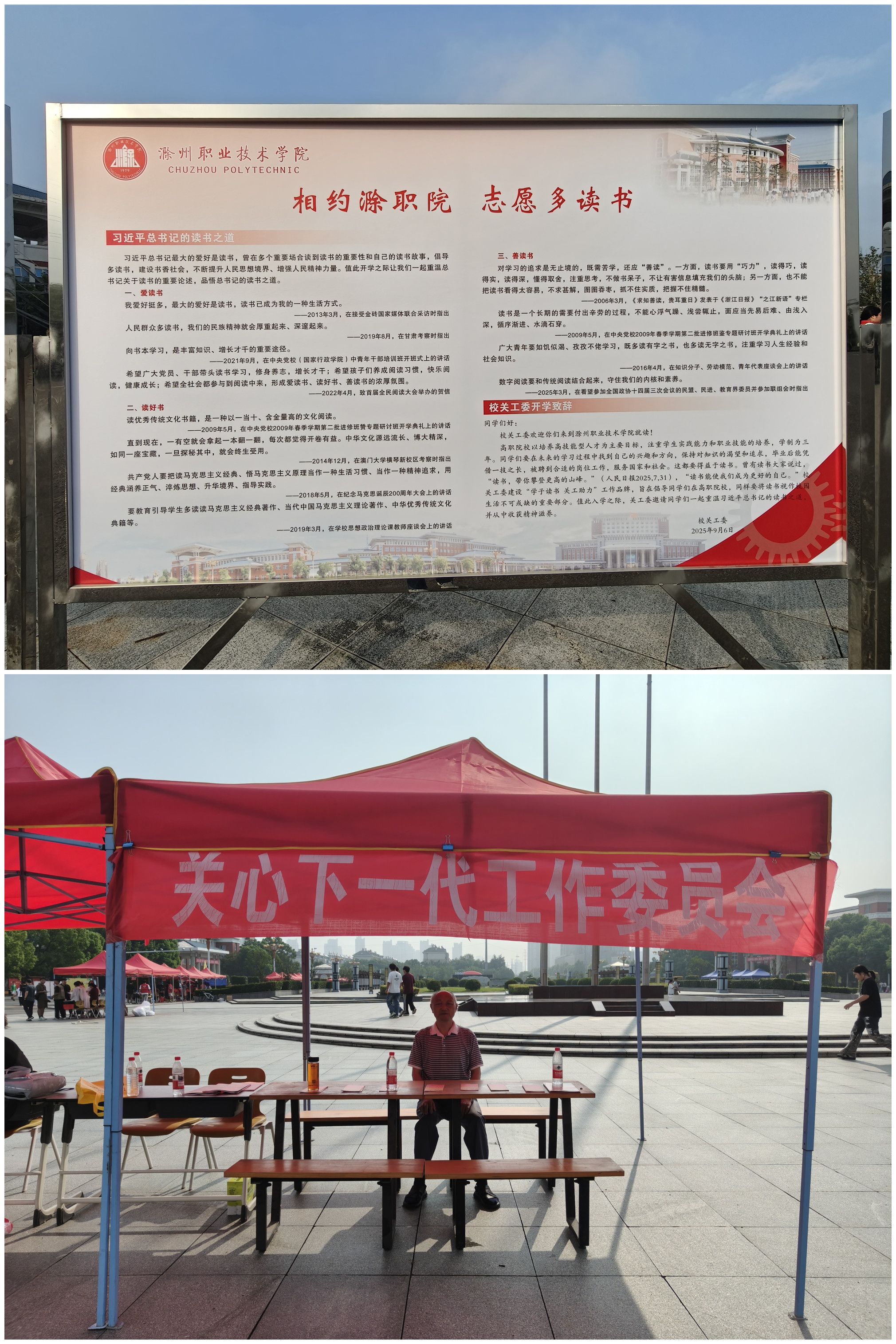 新生入学报到是学校年度的大事、喜事。全校上下未雨绸缪,精心准备,做好新生入学接待工作。校关工委提高思想认识,紧扣学校中心工作,践行“五老”精神,发挥“五老”情感和经验优势,主动参与新生接待,为学生服务,念兹在兹。将习近平总书记的读书之道,制成展板“相约滁职院 志愿多读书”,呈现在新生报到现场,引导同学们重视读书,多读书、读好书,成为更好的自己,服务国家和社会。